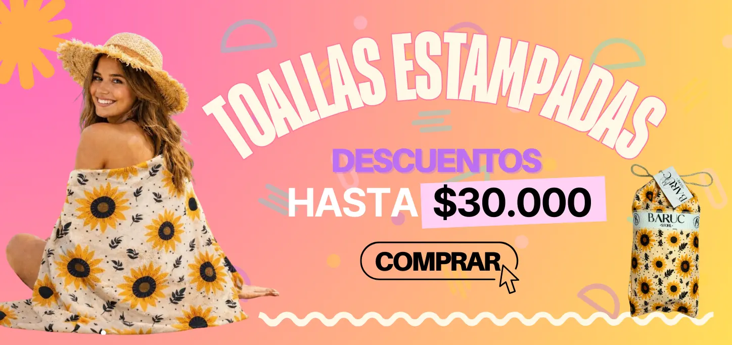 Colores vibrantes, estampados únicos y la suavidad que te mereces. Nuestras toallas estampadas están diseñadas para acompañarte en cada momento, ya sea en casa, la playa o el gimnasio